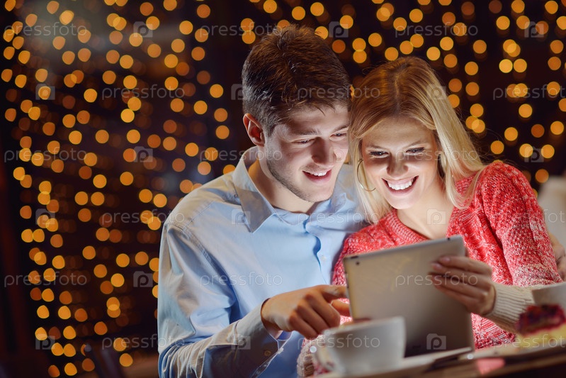 Молодая пара с планшетным компьютером
