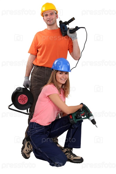 Женщина-строитель и мастер