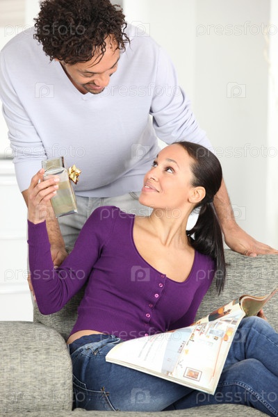Мужчина дарит подарок своей жене