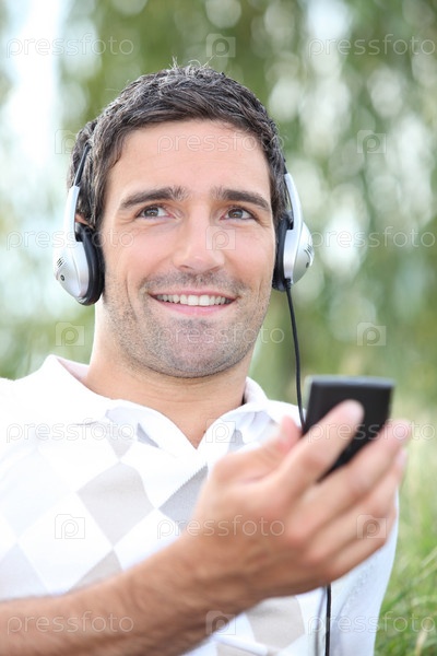 Молодой мужчина слушает музыку