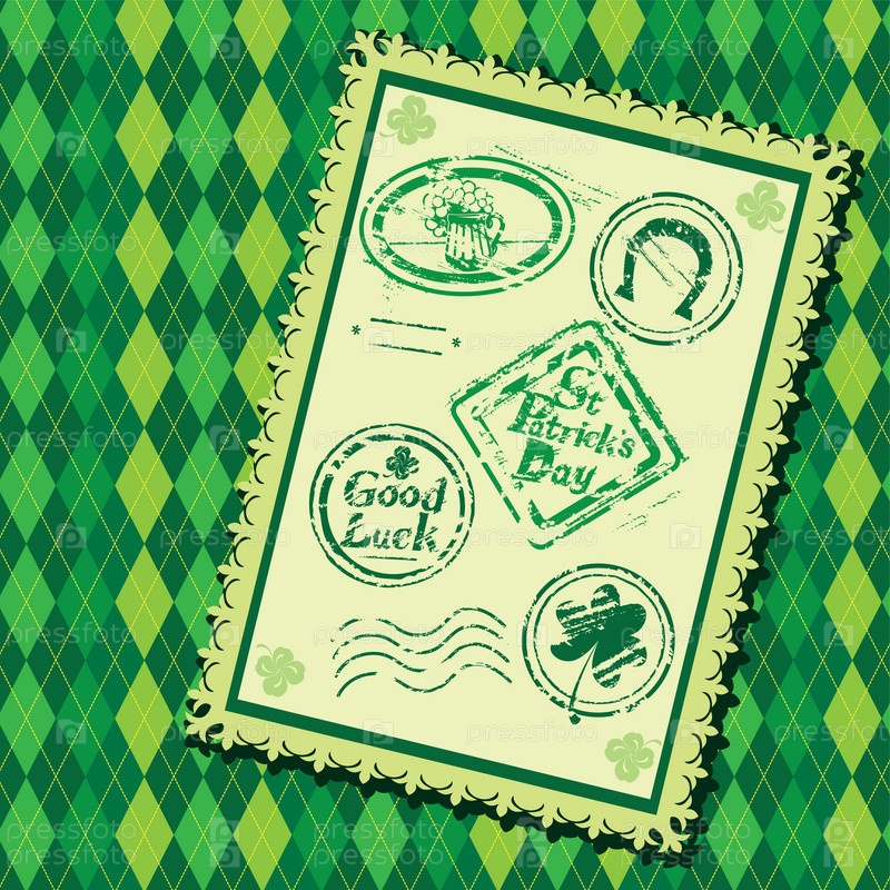 Набор зеленых печатей с пивной кружкой, клевером, подковой для дня Святого Патрика