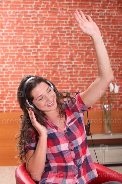 Молодая женщина наслаждается прослушиванием музыки