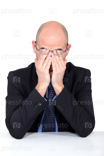 Усталый мужчина протирает глаза
