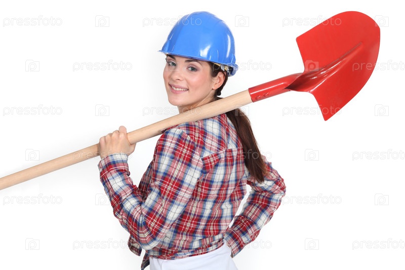 Женщина с лопатой через плечо