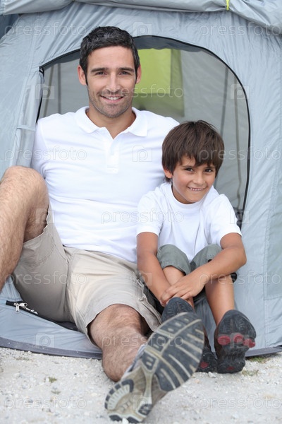 Отец и сын в кемпинге