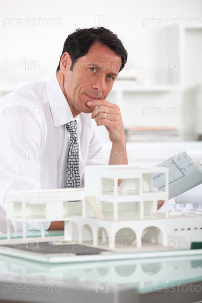 Архитектор с планами и 3D-моделью