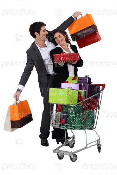 Пара с рождественскими покупками