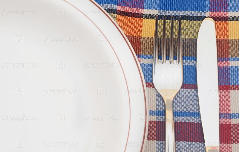 Вилка, нож, тарелка и салфетка