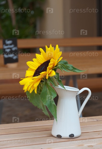 Подсолнечник в кувшине на столе