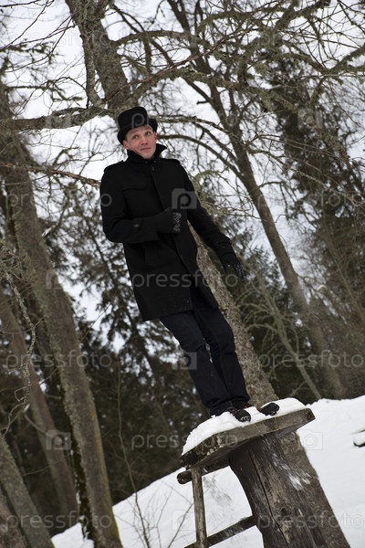 Мужчина стоит на деревянном помосте перед прыжком