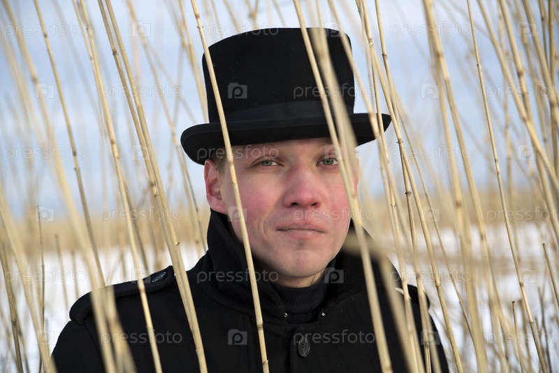 Мужчина смотрит сквозь стебли тростника