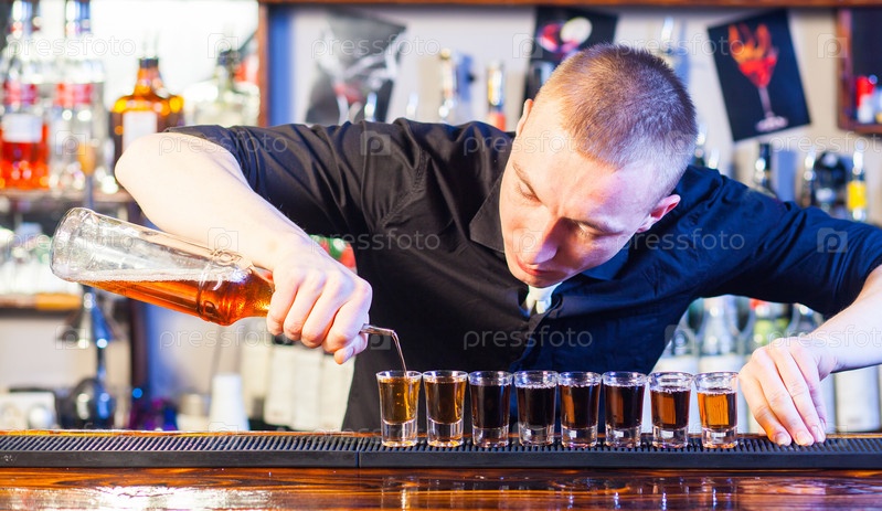 Бармен наливает напитки