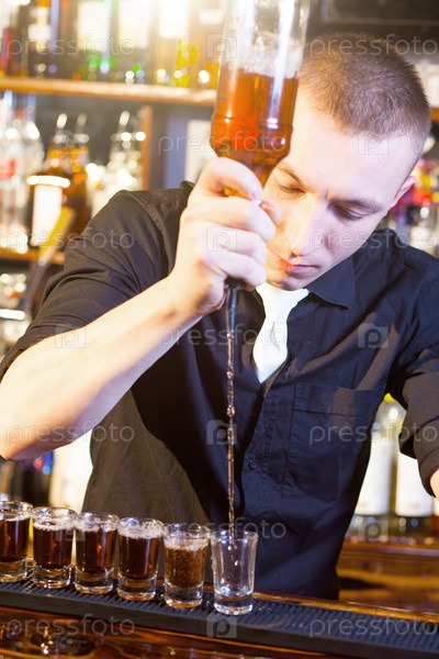 Бармен наливает напитки