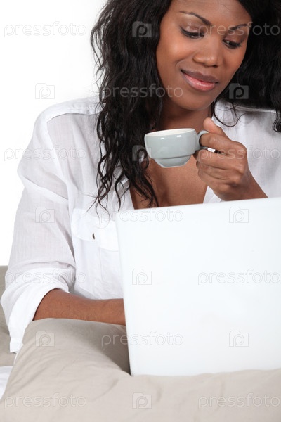 Темнокожая женщина держит чашку кофе