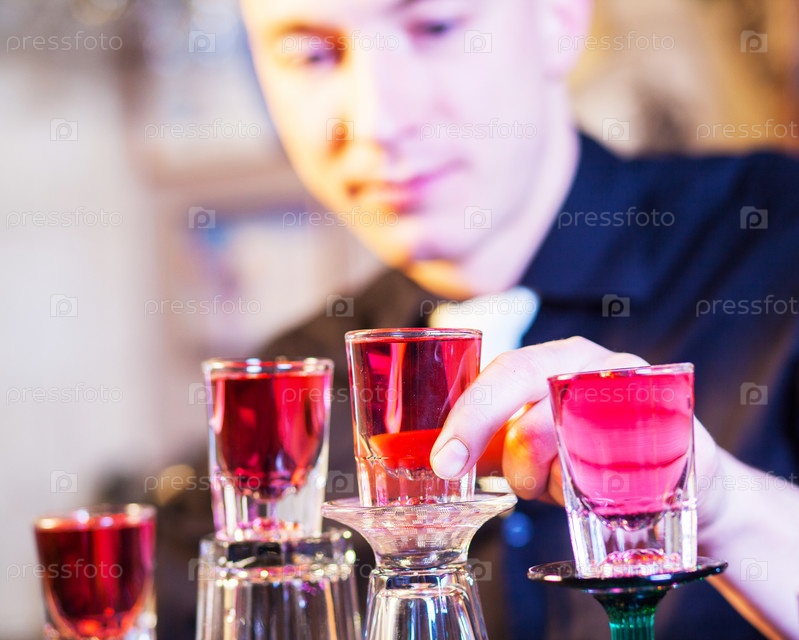 Бармен готовит коктейли
