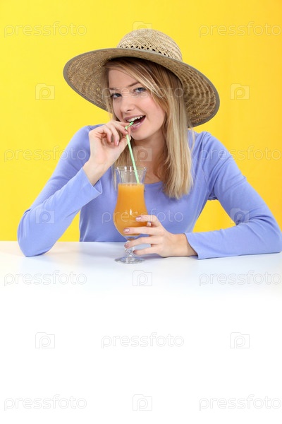 Женщина пьет апельсиновый сок