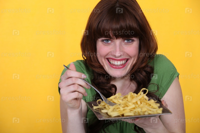 Женщина ест тальятелле