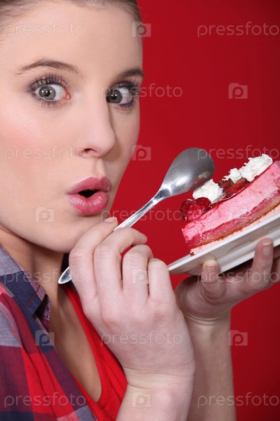 Женщина ест торт