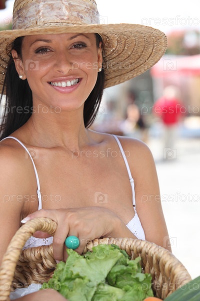 Женщина с корзиной продуктов