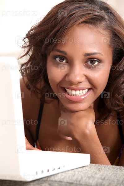 Счастливая женщина с ноутбуком
