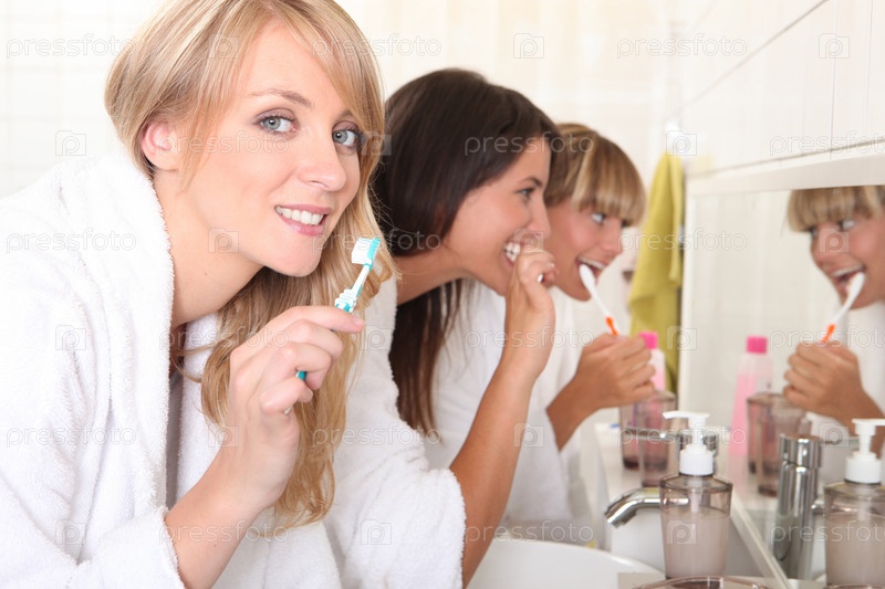 Молодые женщины чистят зубы