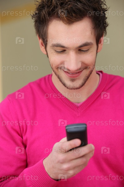 Улыбающийся молодой человек с телефоном