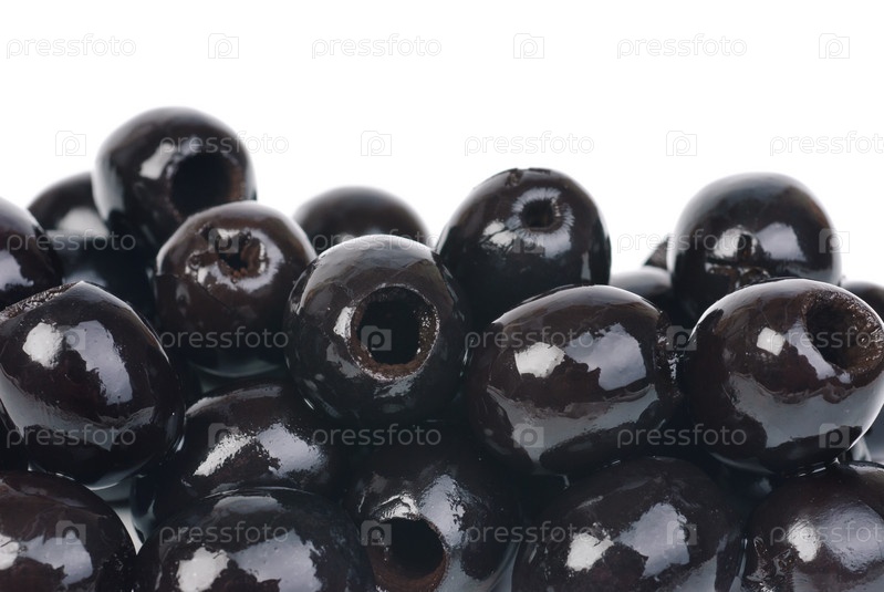 Черные оливки без косточек, изолированные на белом