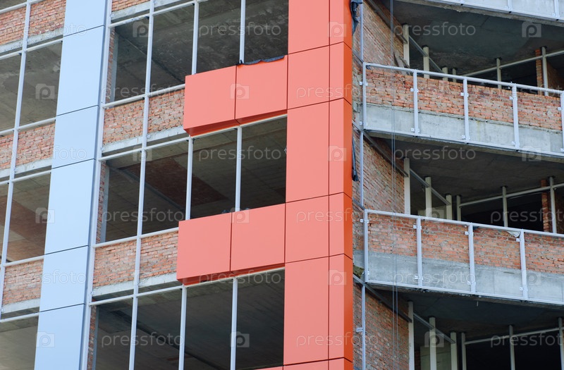 Офисное здание на строительной площадке. Утепление стен