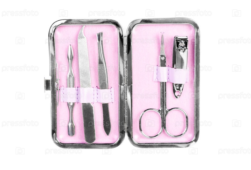 Розовый маникюрный набор, изолированный на белом фоне