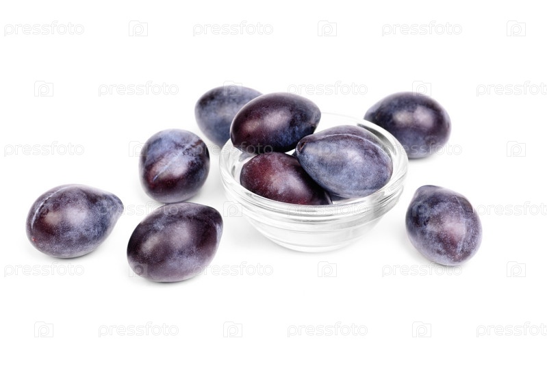 Несколько свежих синих слив на белом фоне