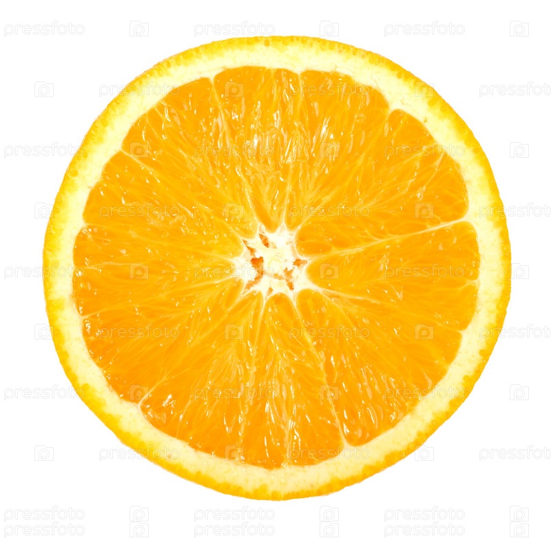 Кружок спелого апельсина на белом фоне