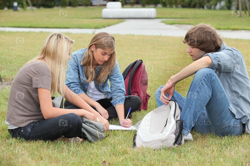 Студенты сидят в парке