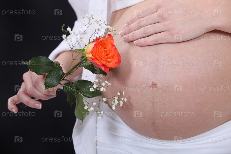 Беременная женщина держит розы