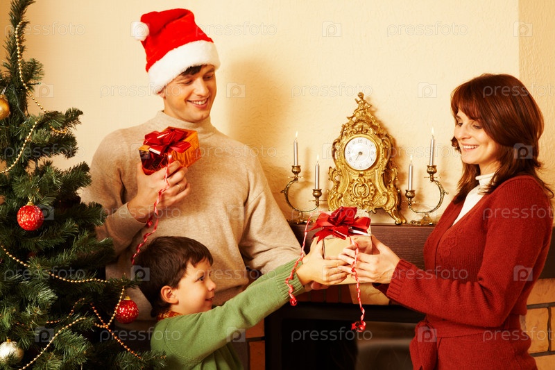 Родители дарят подарок сыну