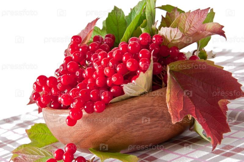 Красные ягоды калины в тарелке