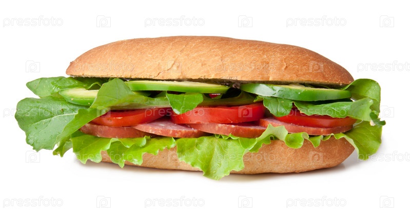 Сэндвич с ветчиной, помидором, огурцом и рукколой