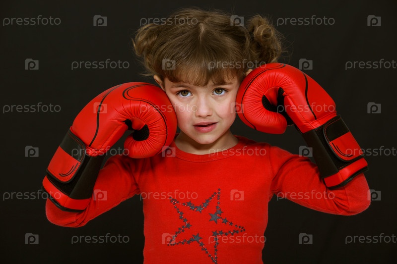 Маленькая девочка с боксерскими перчатками