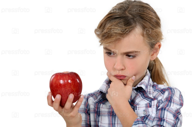 Девочка с красным яблоком