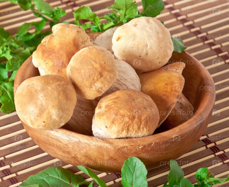 Грибы в деревянной миске