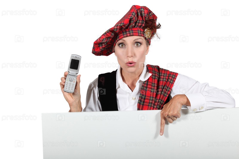 Шотландская женщина с мобильнымо телефоном
