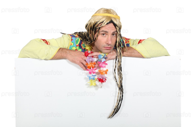Скучающий мужчина в костюме хиппи