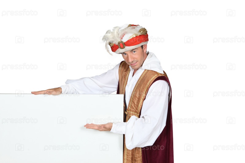 Человек в костюме султана с чистым баннером