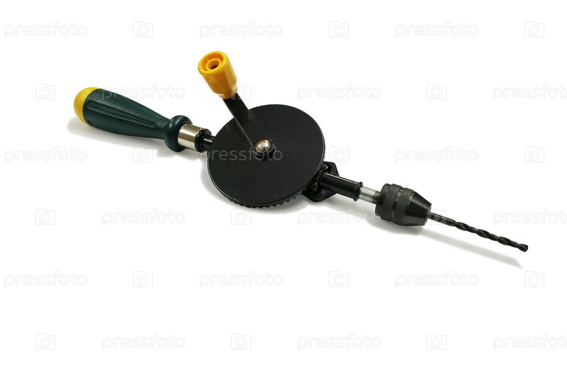 Ручная дрель на белом фоне