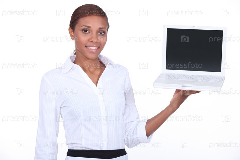 Официантка с компьютером в руке