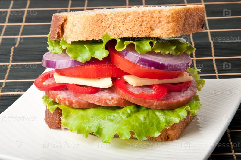 Полезный бутерброд с сыром, ветчиной, помидорами и салатом