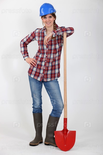 Портрет женщины-строителя с лопатой