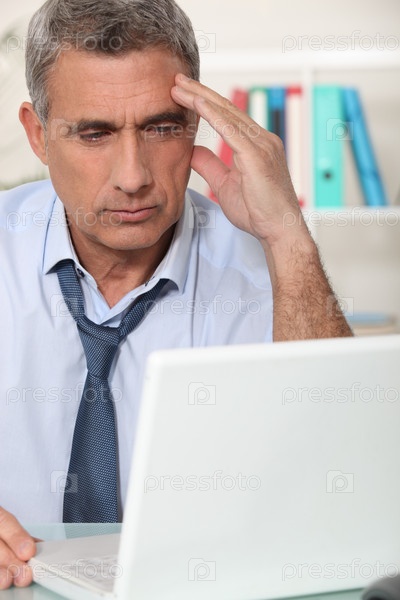 Задумчивый мужчина с ноутбуком