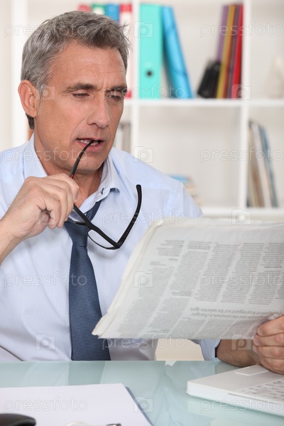 Задумчивый мужчина с газетой
