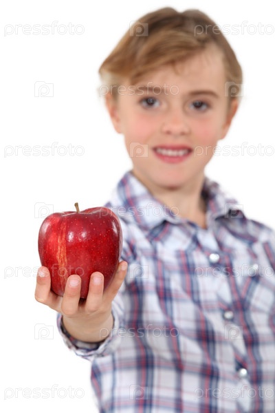 Девочка держит красное яблоко