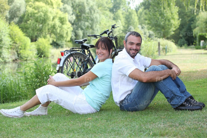 Пара сидит рядом с велосипедами